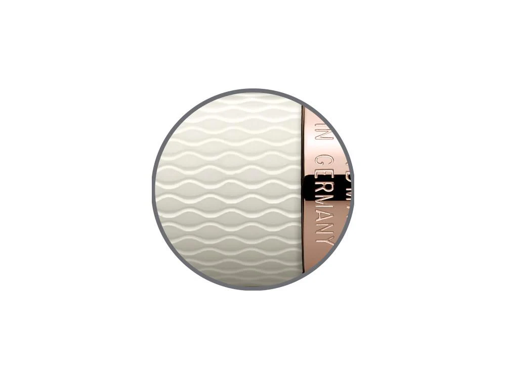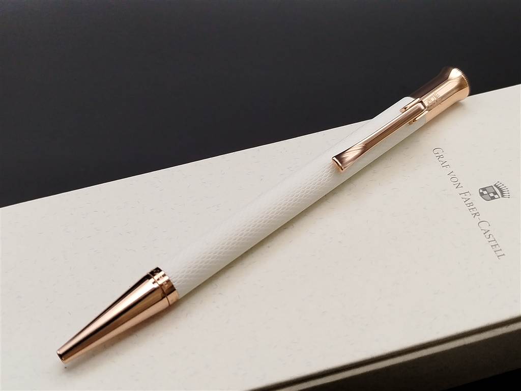 筆身由珍樹脂製作, 筆頂及筆咀以金屬製作,表面鍍玫瑰金