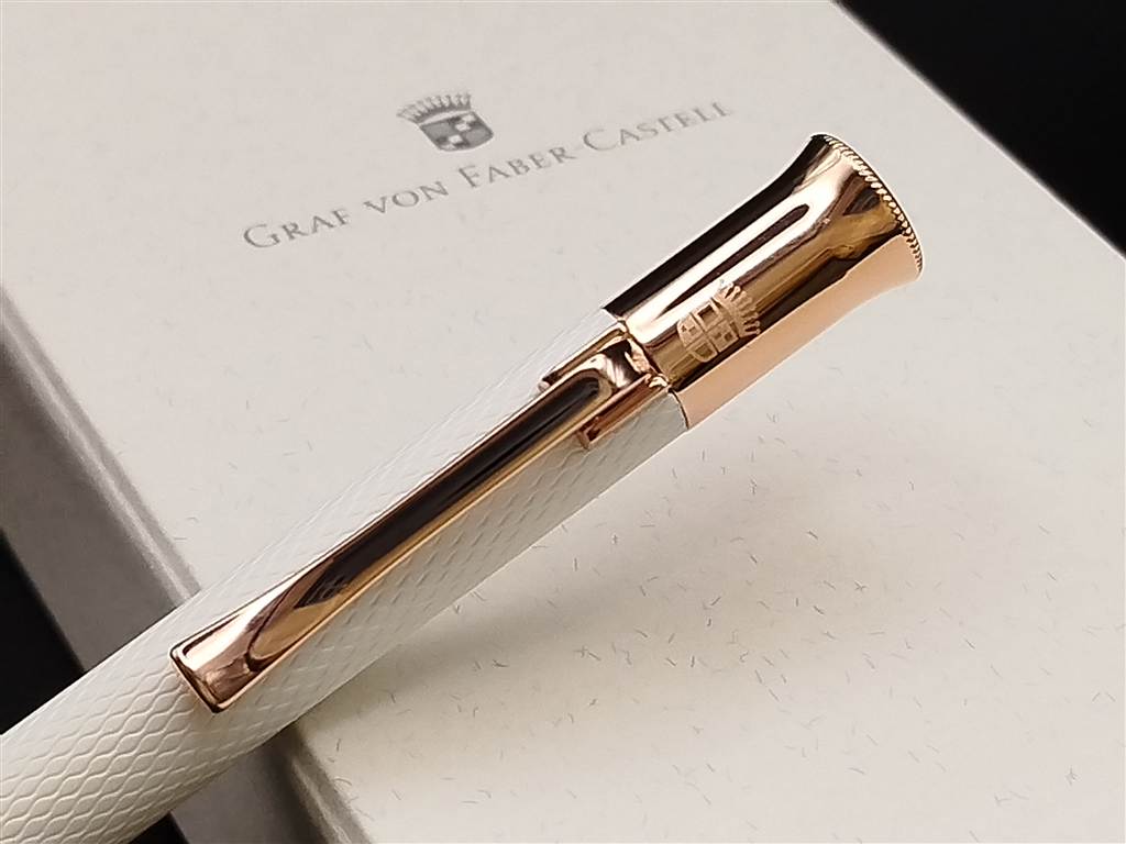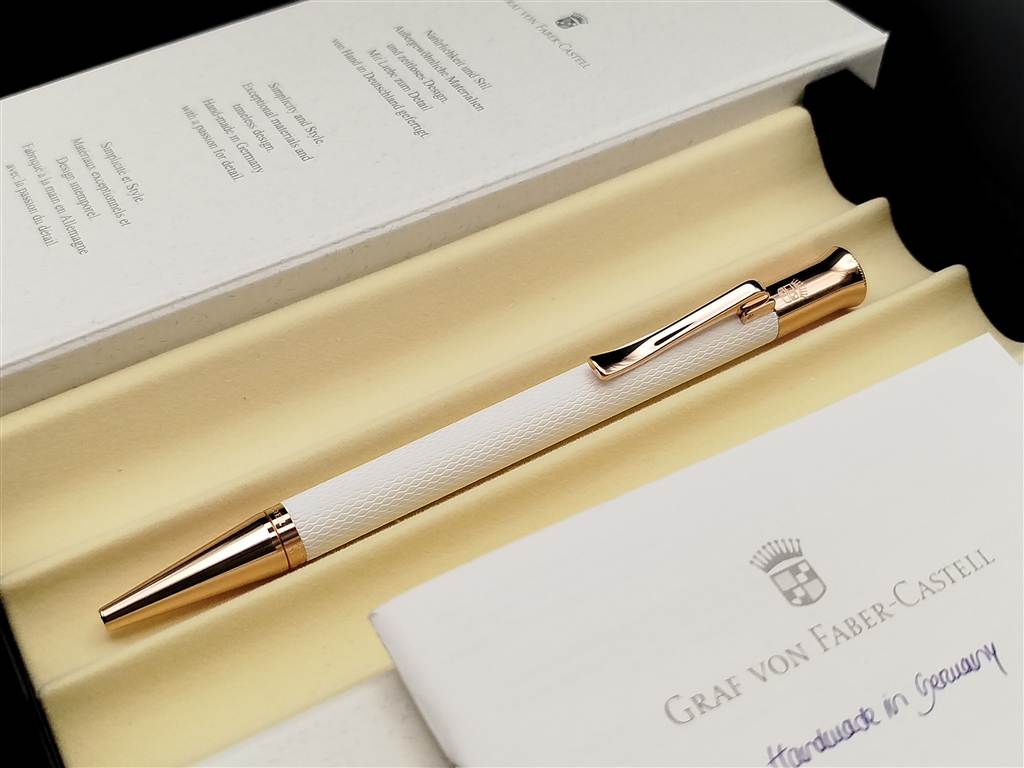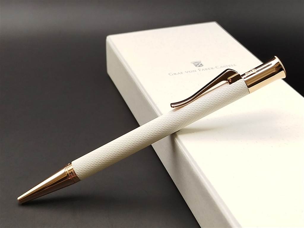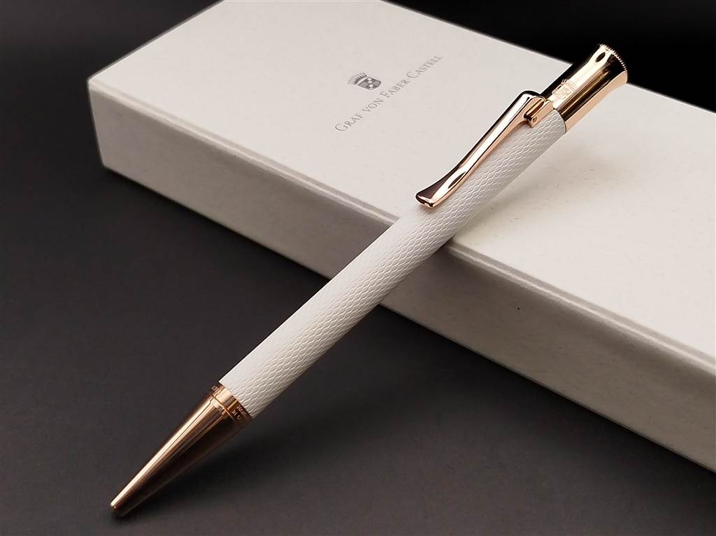 扭索紋——由精細的雕刻線條構成的裝飾圖案——最初用於裝飾珍貴的手錶和配件。輝柏嘉伯爵 (Graf von Faber-Castell) 採用這種傳統的珠寶工藝,將 Guilloche 系列的書寫工具打造成真正的珠寶:珍貴的樹脂筆桿逐行刻上花絲圖案,然後通過手工上漆和拋光工藝進一步精製。 Guilloche 款式有多種富有表現力的顏色變化,配合玫瑰金飾面更顯尊貴。