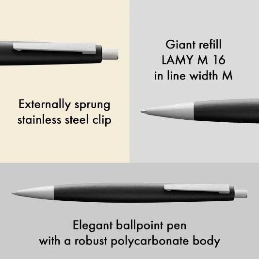 LAMY 2000系列 – 磨砂黑纖維桿銀夾原子筆 (LMY-2000-MBLK-CT-BP)