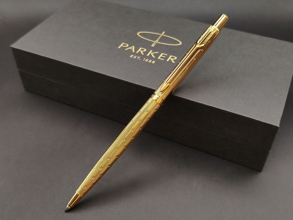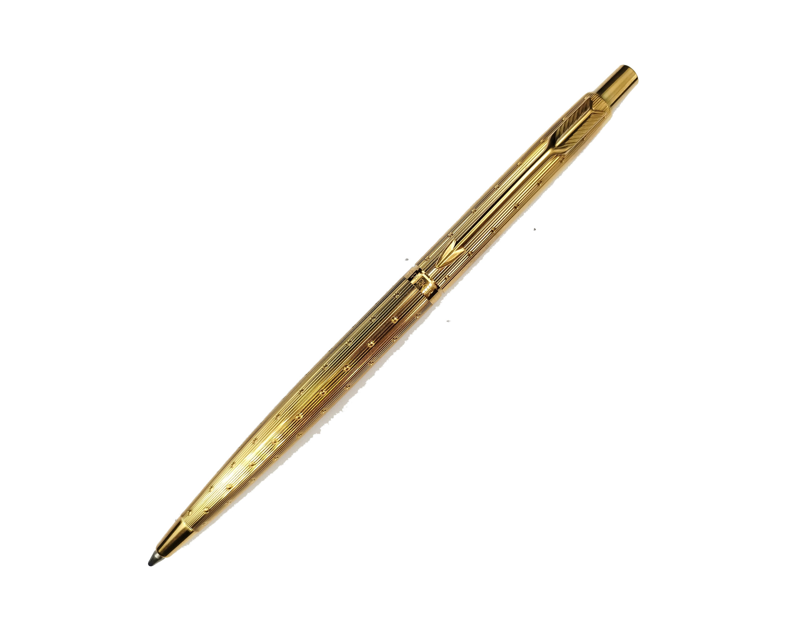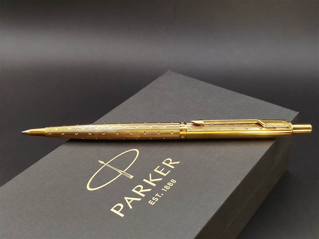 筆身物料為金屬,表面鍍23K黃金,表面鑽石型飾紋處理