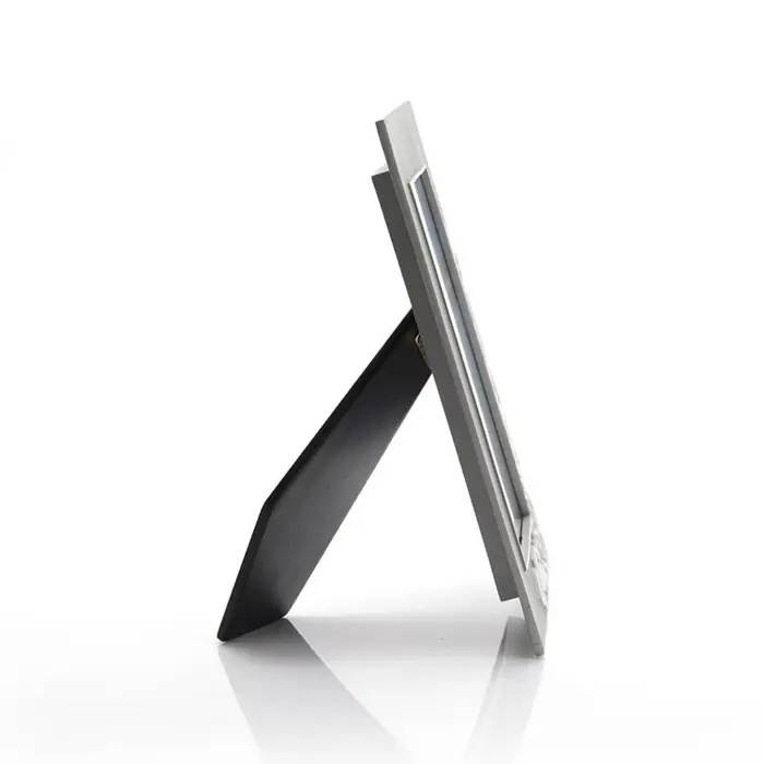 盛開的牡丹花瓣和花蕾點綴著相框,設計簡潔優雅。採用霧面錫材質,並輔以亮面金屬飾邊。