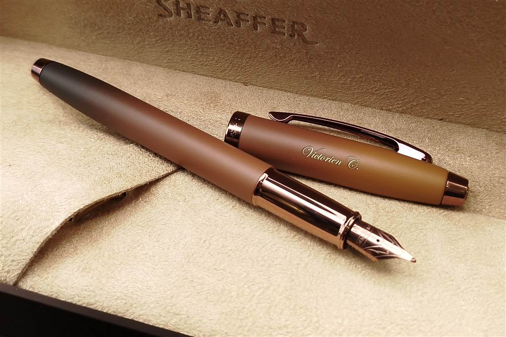 筆夾及飾件為金屬表面鍍亮啡色物料