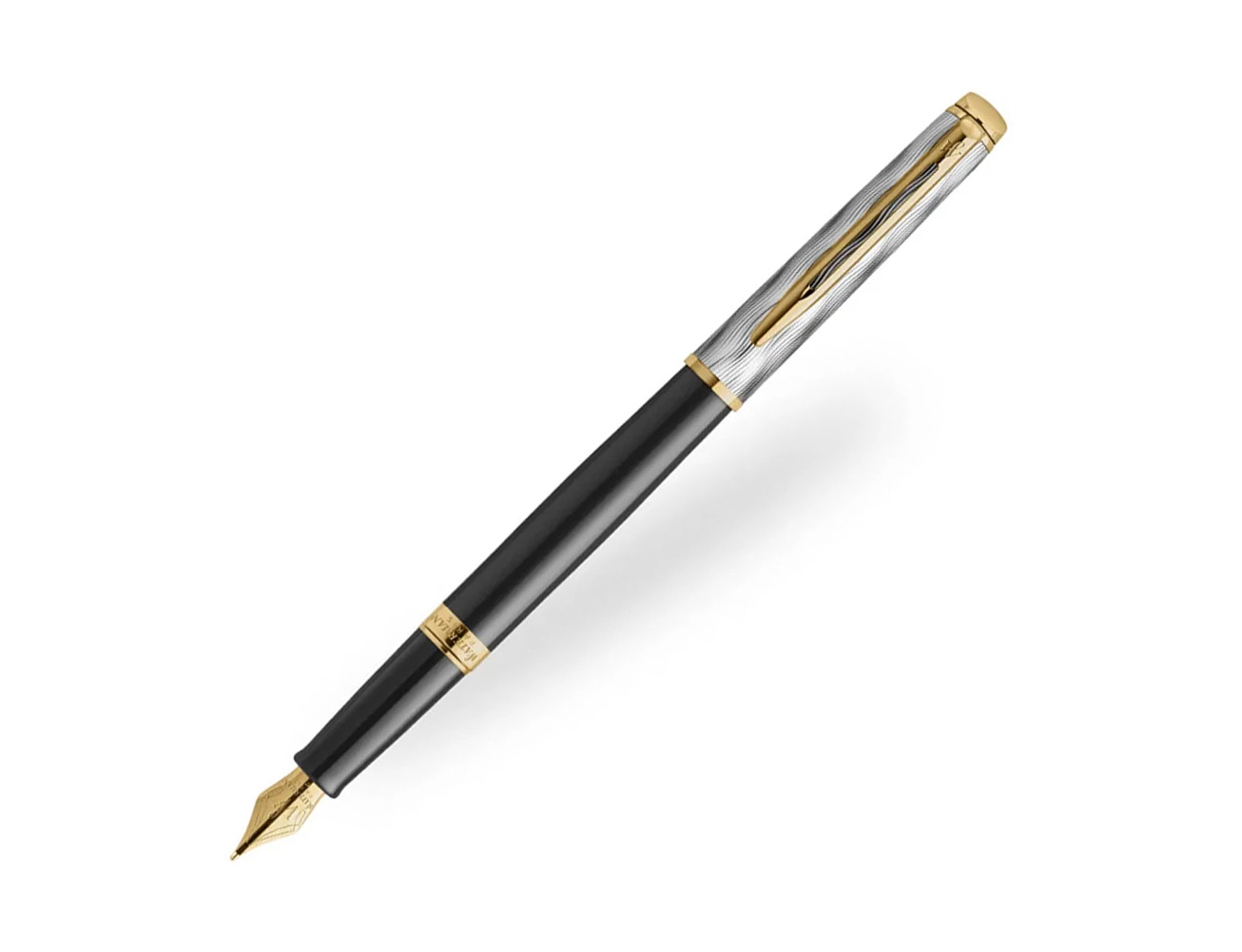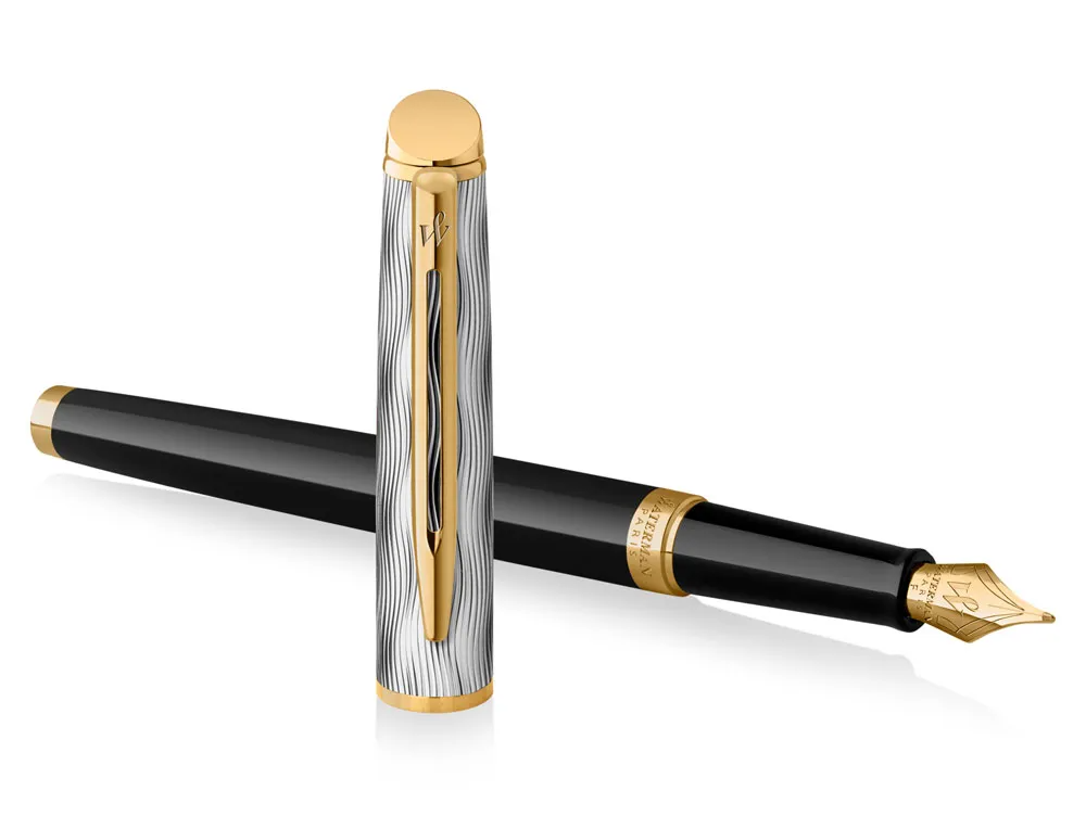 筆上半部為金屬鍍鈀(Palladium),飾以波浪狀花紋,金色部份為鍍黃金